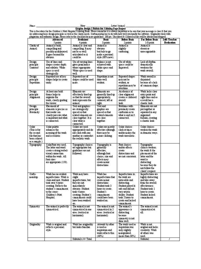 Rubric For Coloring
